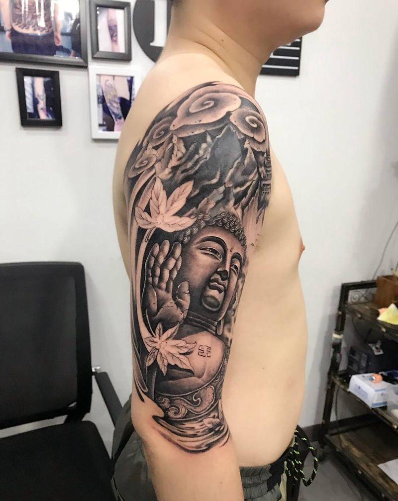 当前位置: 首页 >湖南省岳阳市纹身店-忠义堂刺青私人定制纹身图案>大日如来,遮盖旧图。纹身图片