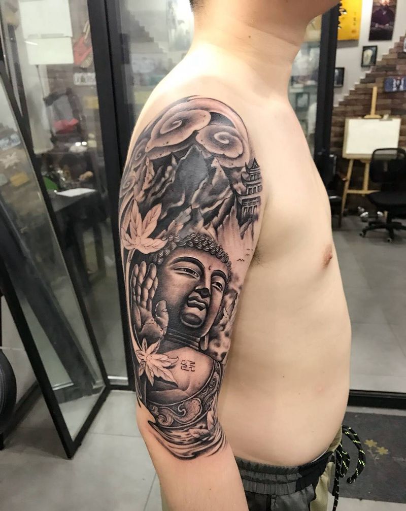 当前位置: 首页 >湖南省岳阳市纹身店-忠义堂刺青私人定制纹身图案>大日如来,遮盖旧图。纹身图片