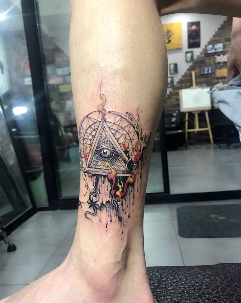 • T包小腿吹火男+阿多福纹身图片_腿部老传统新传统吹火男阿