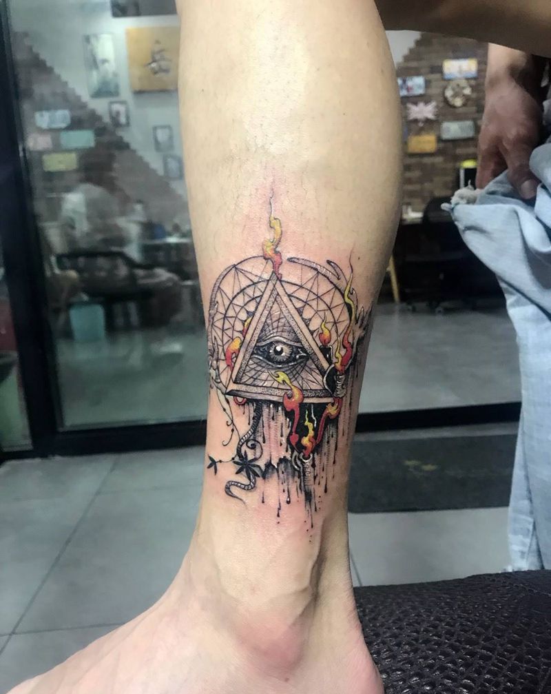 • T包小腿吹火男+阿多福纹身图片_腿部老传统新传统吹火男阿