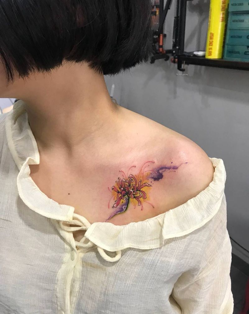 彩墨彼岸花纹身图片