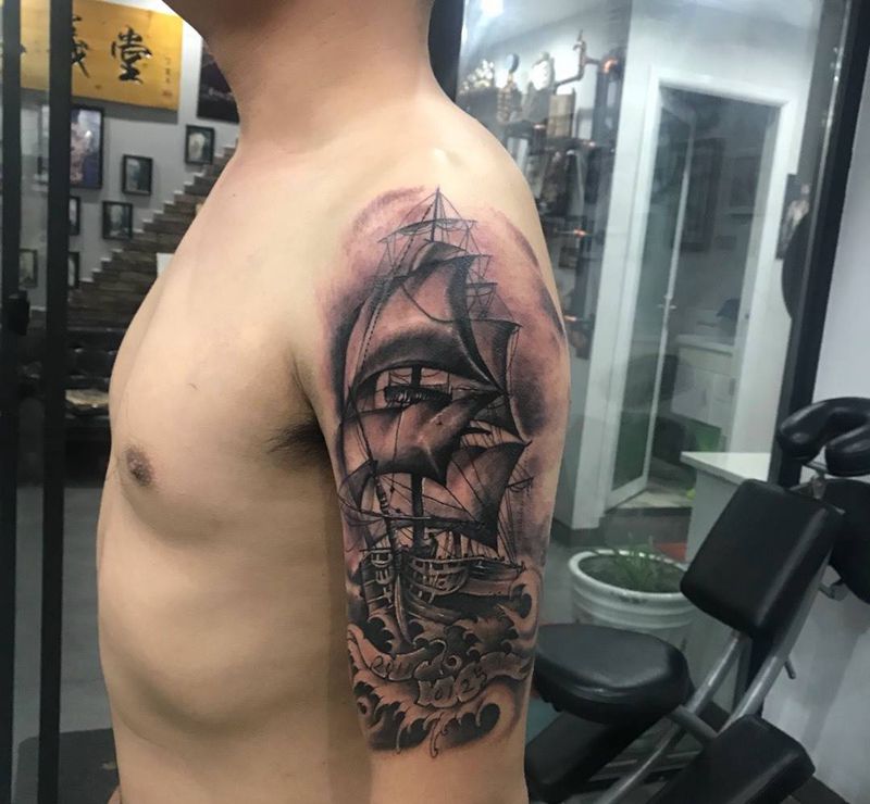 当前位置: 首页 >湖南省岳阳市纹身店-忠义堂刺青私人定制纹身图案>一帆风顺,遮盖旧图。纹身图片