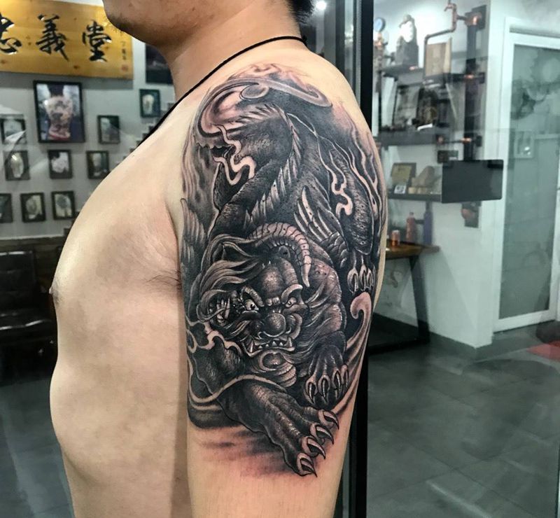 当前位置: 首页 >湖南省岳阳市纹身店-忠义堂刺青私人定制纹身图案>大臂貔貅纹身图片