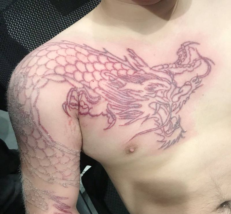 • T网红王老大花腿龙纹身图片_腿部新传统纹身图案