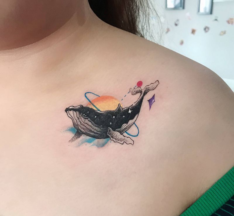 鲸 。遮盖纹身图片_胸部新传统纹身图案