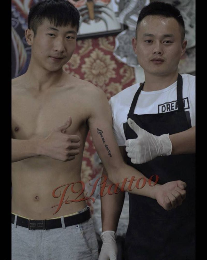 当前位置: 首页 >湖南省常德市纹身店-常德金麒麟纹身纹身图案>徒弟第一次纹真人 加油纹身图片