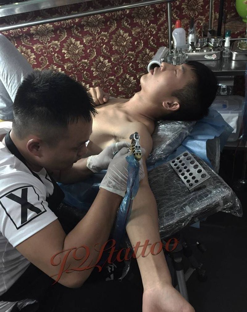 当前位置: 首页 >湖南省常德市纹身店-常德金麒麟纹身纹身图案>徒弟第一次纹真人 加油纹身图片