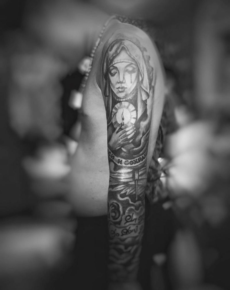 进行中纹身图片_手臂手部欧美肖像写实人物纹身图案