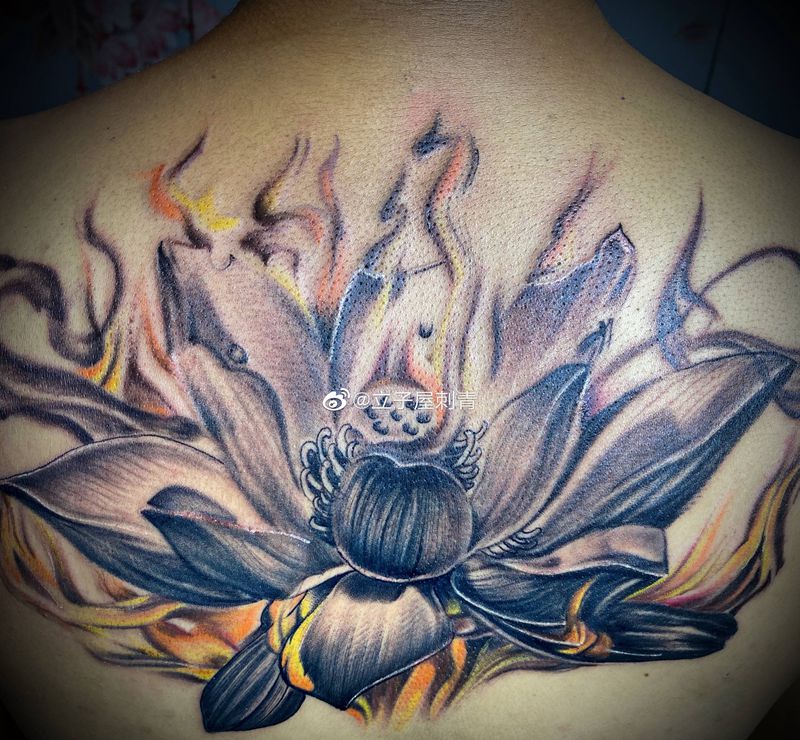 莲花纹身图片_背部纹身图案