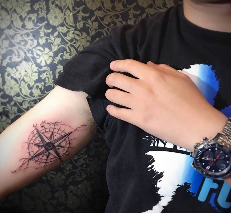 当前位置: 首页 >湖南省常德市纹身店-立子屋刺青纹身图案>指南针纹身图片_成品手臂欧美清新几何静物纹身图案