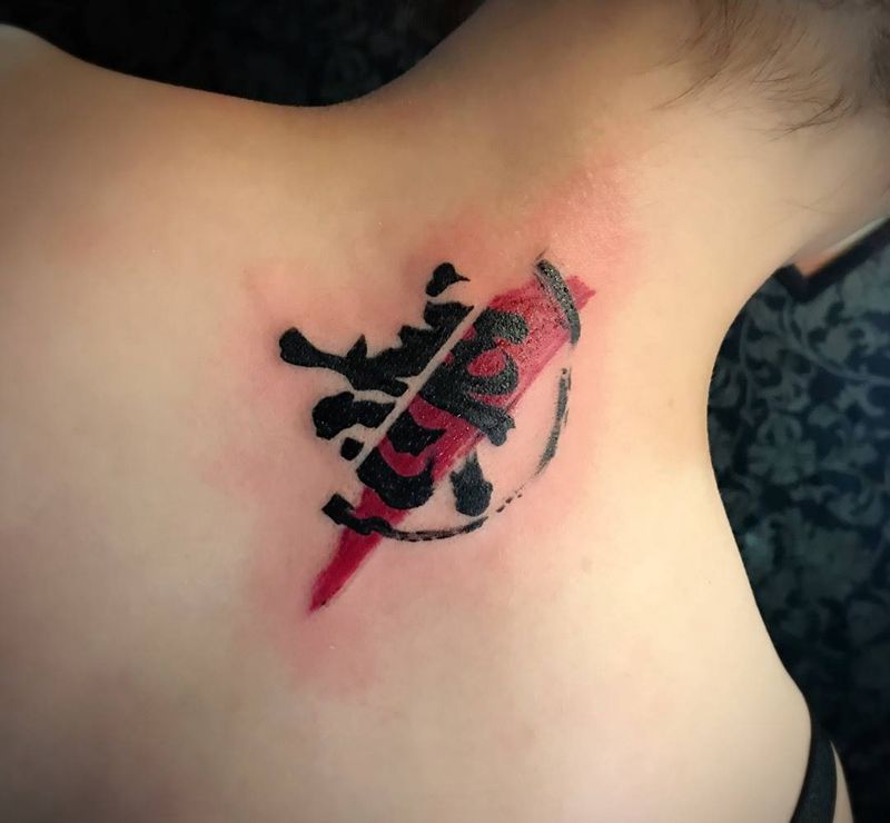 善恶一念间纹身图片_成品颈部背部传统清新字符静物图腾纹身图案
