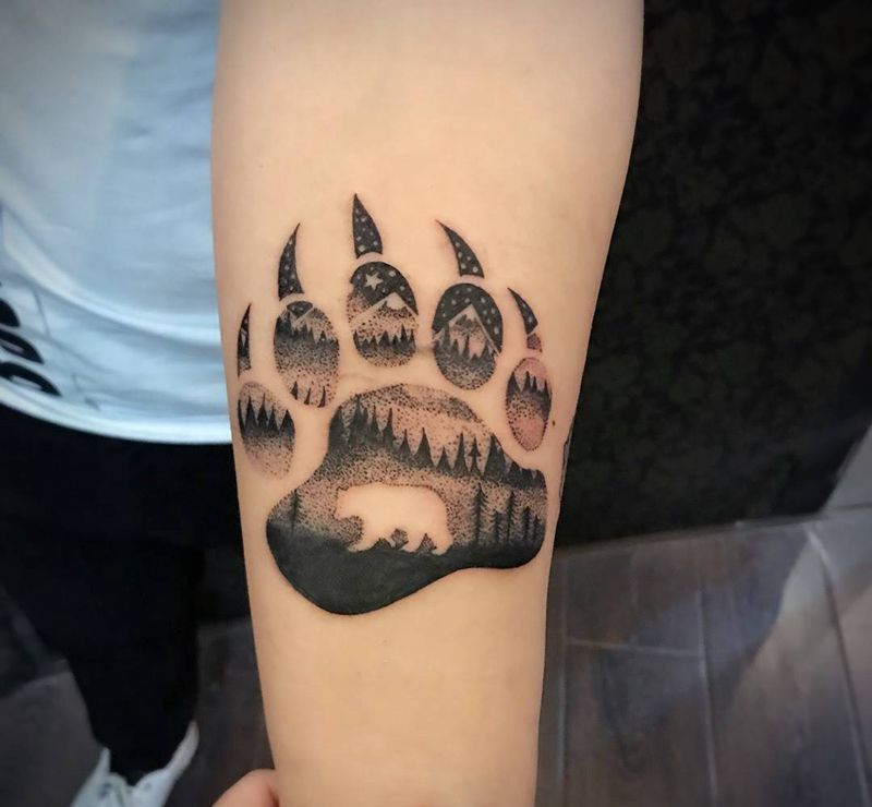 星空下的熊掌纹身图片_成品手臂欧美清新动物植物静物图腾纹身图案