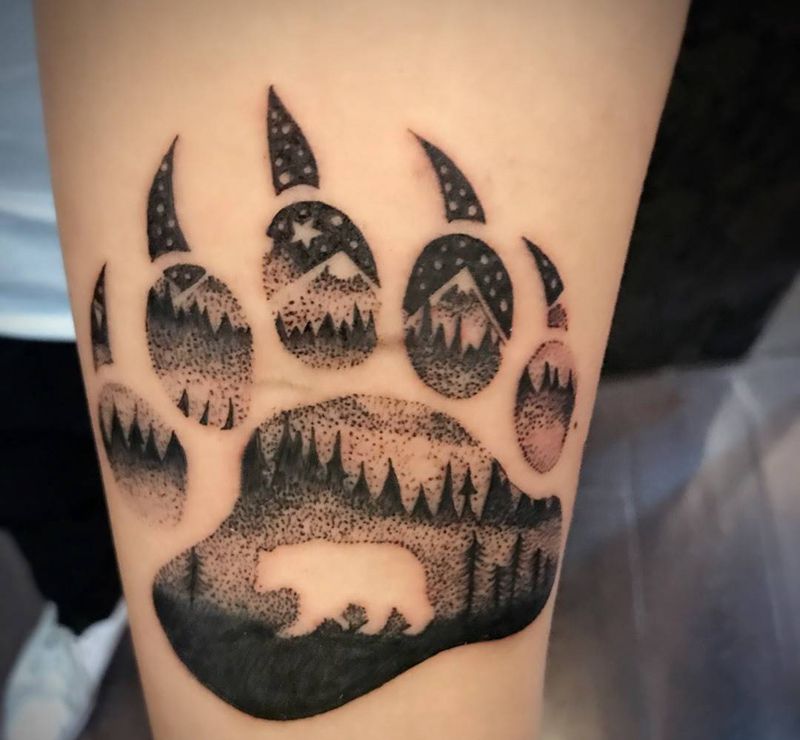 星空下的熊掌纹身图片_成品手臂欧美清新动物植物静物图腾纹身图案