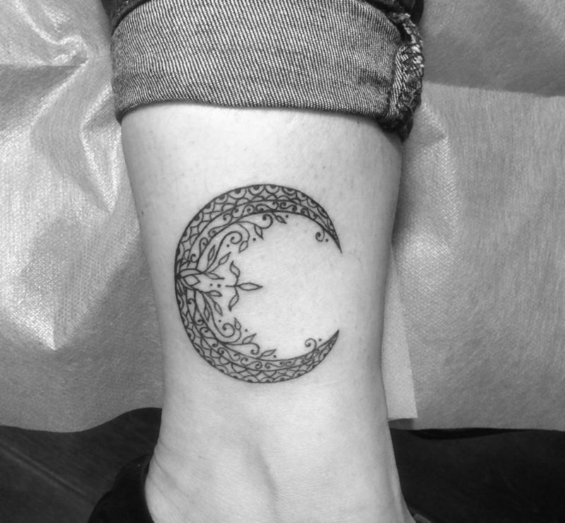 弯弯月牙纹身图片_成品脚部腿部欧美习俗清新静物纹身图案
