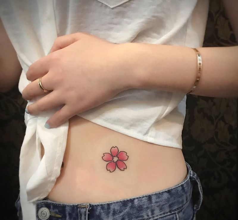 当前位置: 首页 >湖南省常德市纹身店-立子屋刺青纹身图案>樱花纹身图片_成品腹部清新植物纹身图案