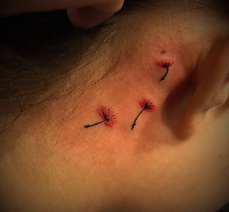 当前位置: 首页 >湖南省常德市纹身店-立子屋刺青纹身图案>红色蒲公英纹身图片_成品颈部植物清新纹身图案