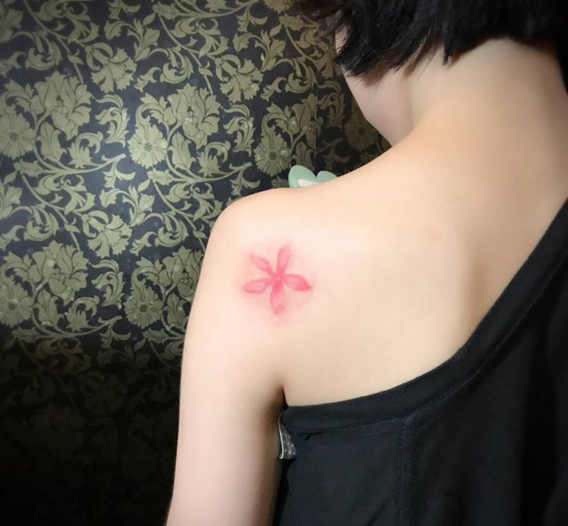 当前位置: 首页 >湖南省常德市纹身店-立子屋刺青纹身图案>樱花纹身图片_成品背部清新植物纹身图案