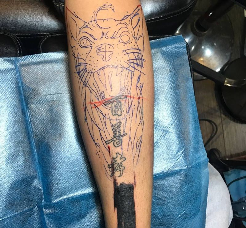当前位置: 首页 >湖南省常德市纹身店-立子屋刺青纹身图案>小腿遮盖纹身图片_成品腿部欧美动物纹身图案