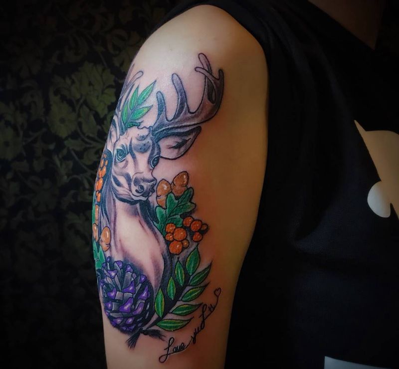 当前位置: 首页 >湖南省常德市纹身店-立子屋刺青纹身图案>麋鹿纹身图片_成品手臂欧美动物纹身图案