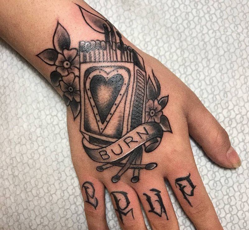 Old school燃烧纹身图片_成品手部欧美静物纹身图案