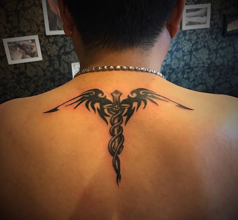 • 纹身吧推荐的披肩图腾半胛纹身图案作品展示