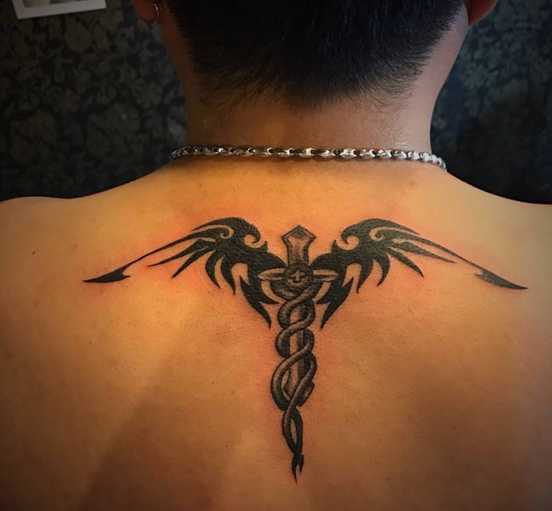 • 纹身吧推荐的披肩图腾半胛纹身图案作品展示