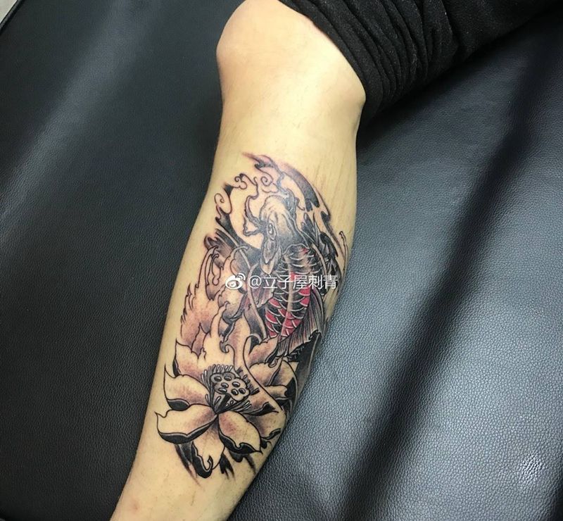 小腿鲤鱼纹身图片_腿部新传统纹身图案