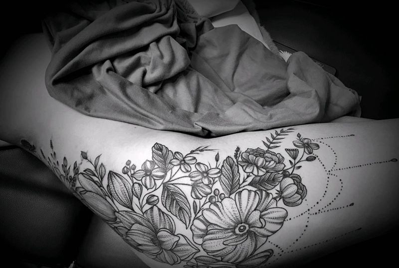 花臀纹身图片_臀部纹身图案
