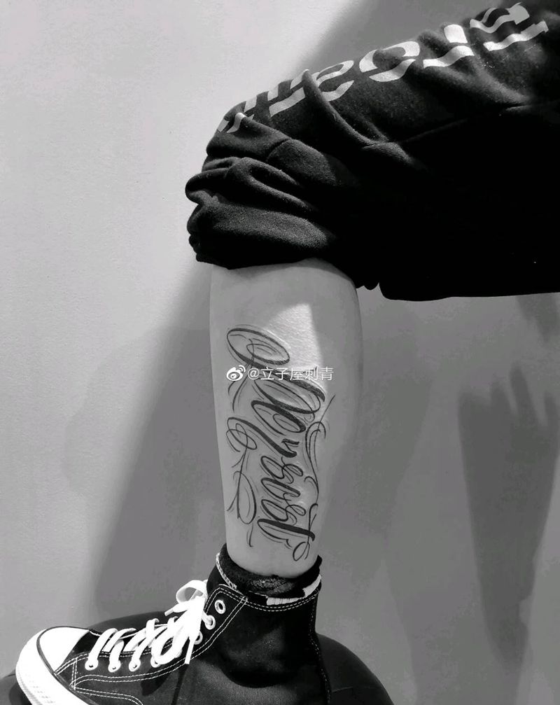 花体字纹身图片_腿部花体字纹身图案