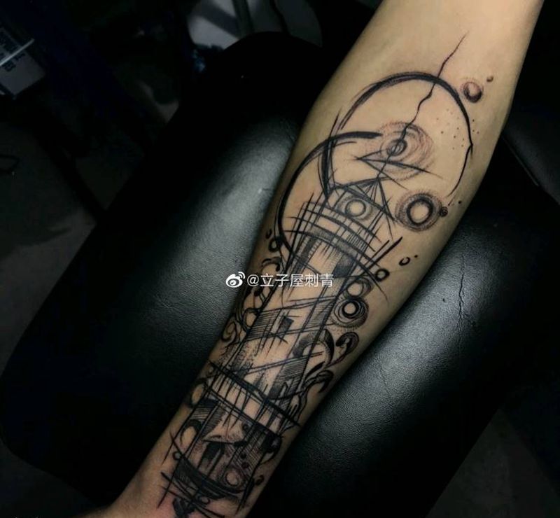 速写灯塔纹身图片_手臂纹身图案