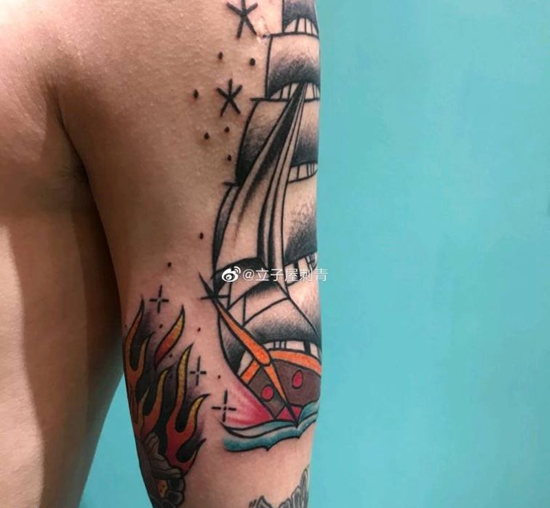 当前位置: 首页 >湖南省常德市纹身店-立子屋刺青纹身图案>old school拼接纹身图片_手臂Old School纹身图案