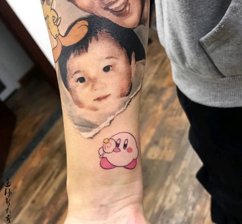 当前位置: 首页 >湖南省岳阳市纹身店-岳阳新刺客纹身图案>父女纹身图片_手臂彩色写实老照片纹身图案