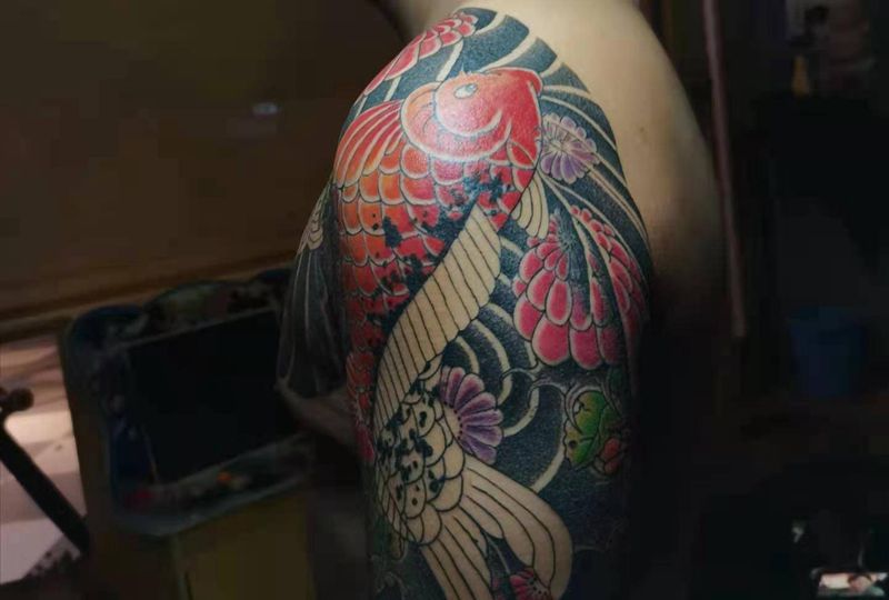 • 纹身吧推荐的披肩图腾半胛纹身图案作品展示