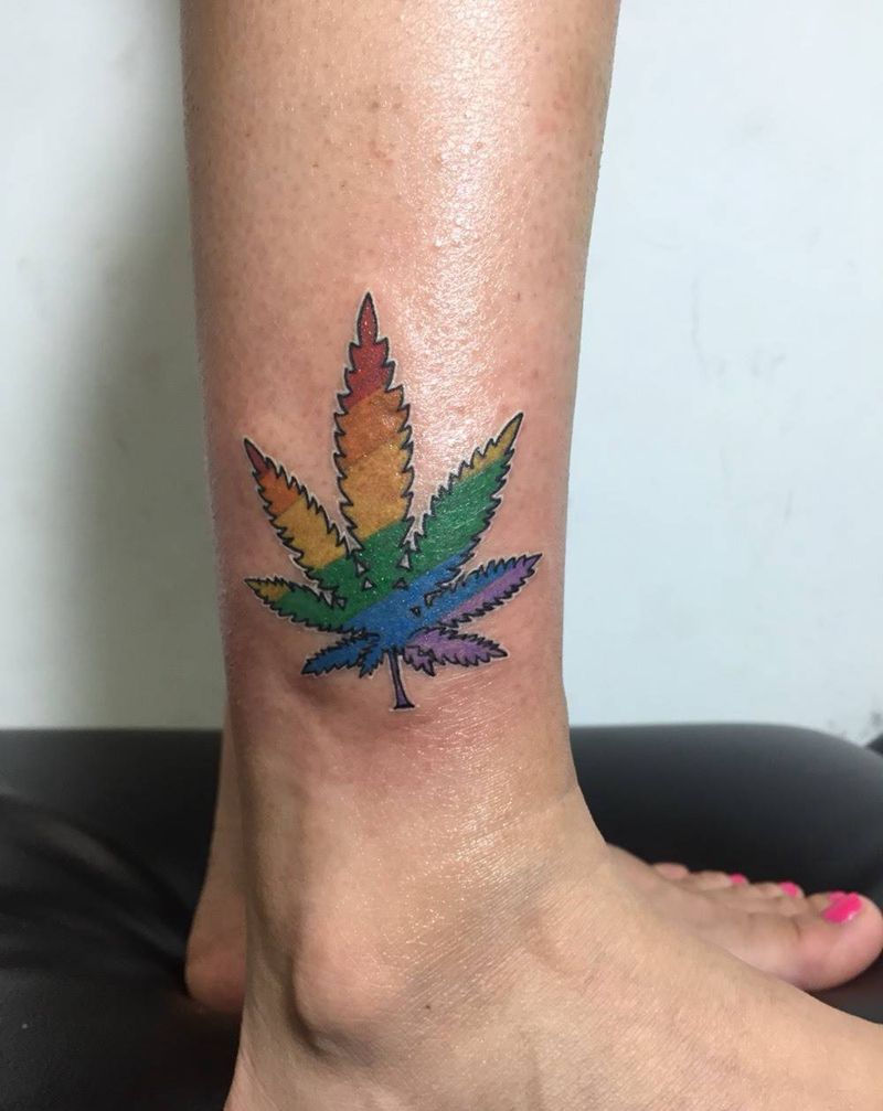 彩虹麻叶纹身图片