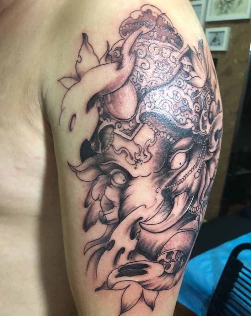 当前位置: 首页 >湖南省永州市纹身店-悟空纹身工作室纹身图案>大臂象神纹身图片
