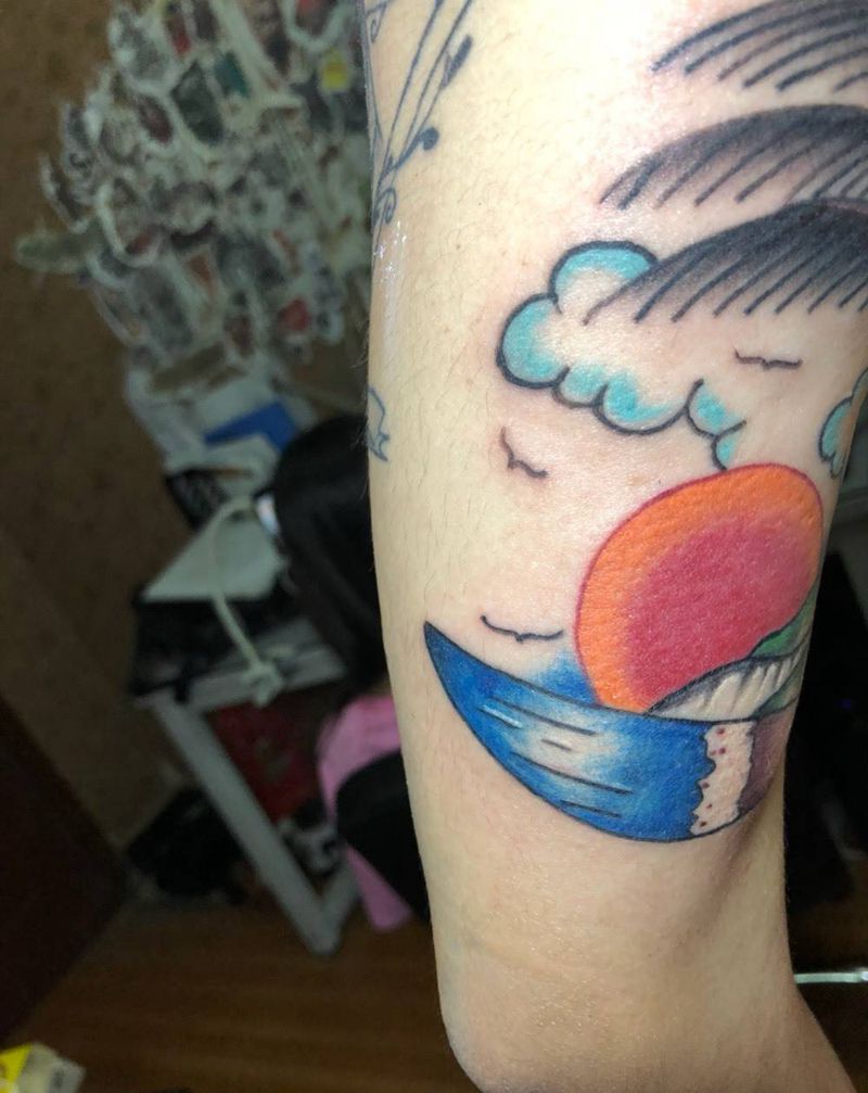 当前位置: 首页 >湖南省永州市纹身店-悟空纹身工作室纹身图案>Old school海滩椰子树纹身图片