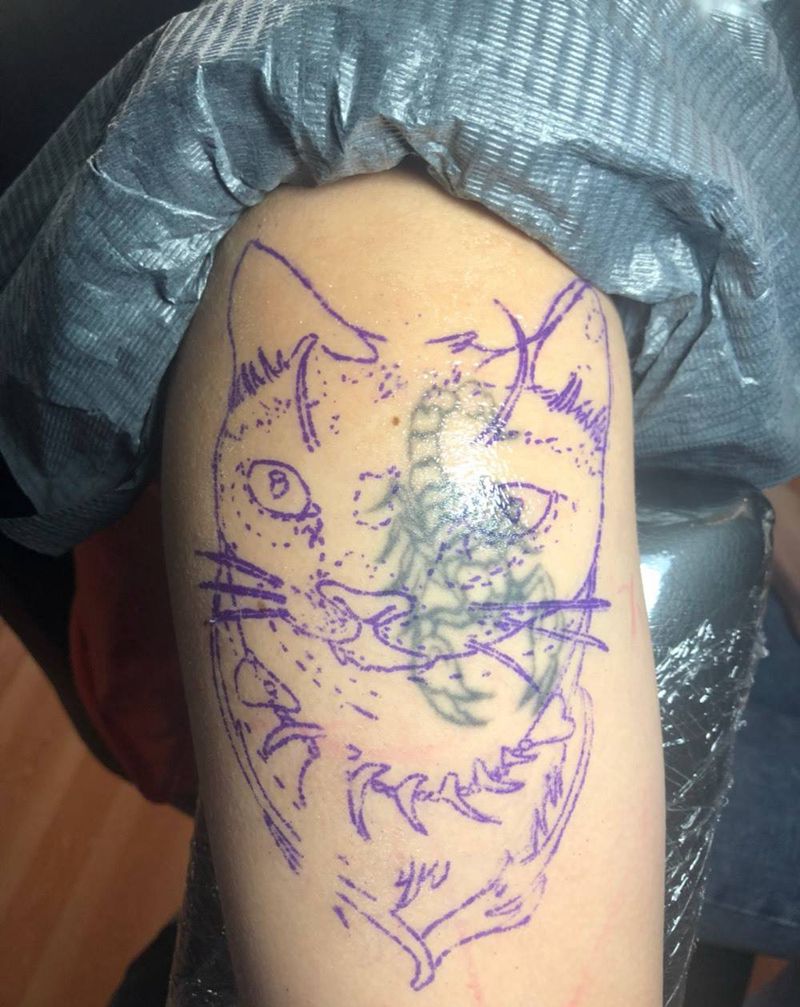 当前位置: 首页 >湖南省永州市纹身店-悟空纹身工作室纹身图案>“小龙虾”遮盖纹身图片