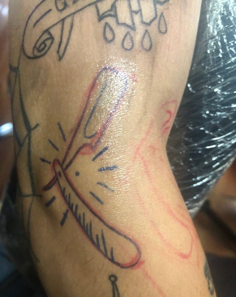 当前位置: 首页 >湖南省永州市纹身店-悟空纹身工作室纹身图案>发型师的old school拼接纹身图片