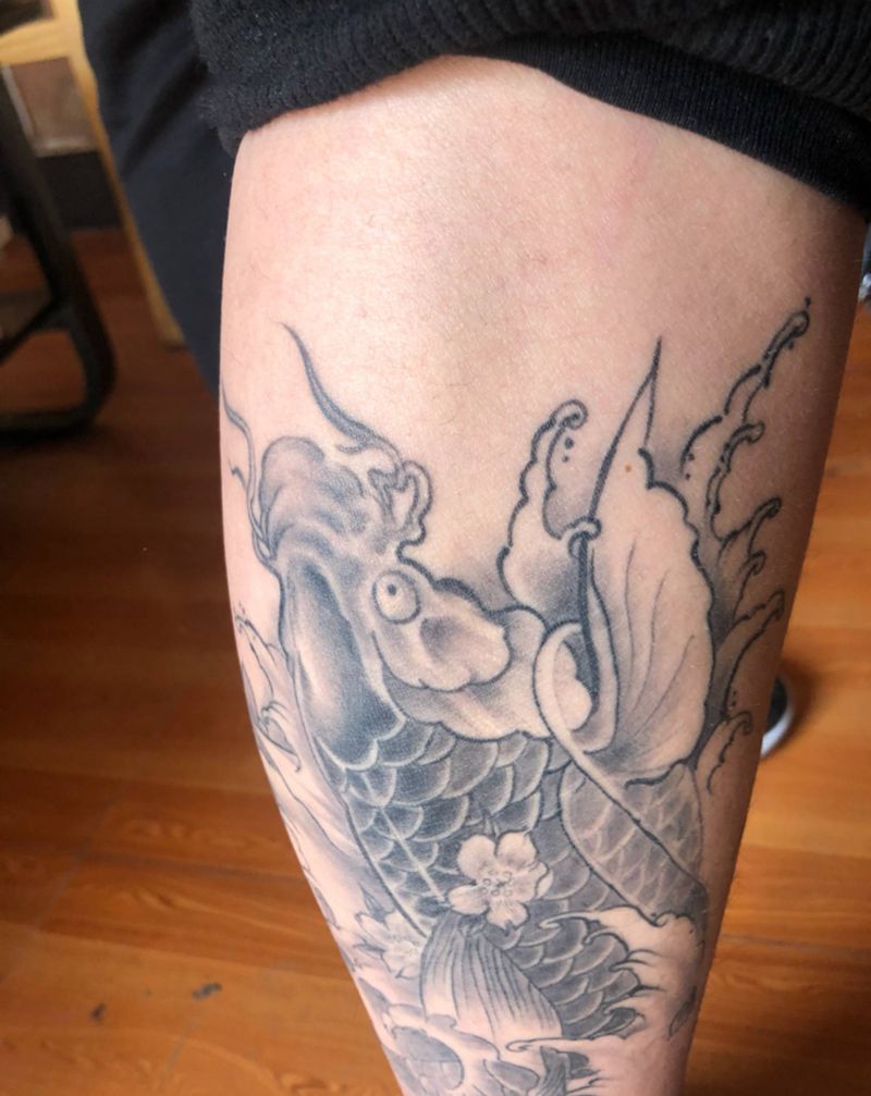鲤鱼小腿纹身图片