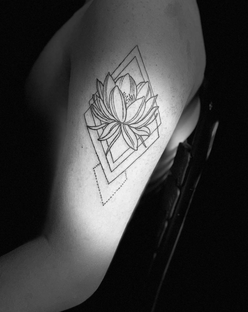 当前位置: 首页 >湖南省永州市纹身店-悟空纹身工作室纹身图案>大臂莲花纹身图片_手臂几何纹身图案