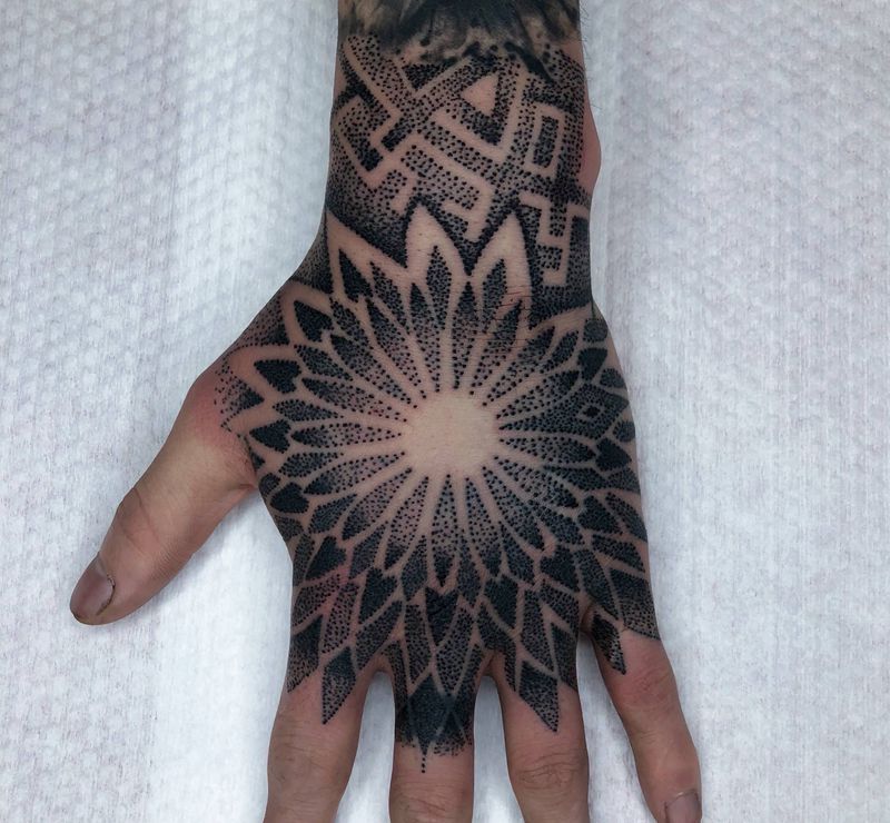 梵花点刺纹身图片_手部点刺花点刺纹身图案