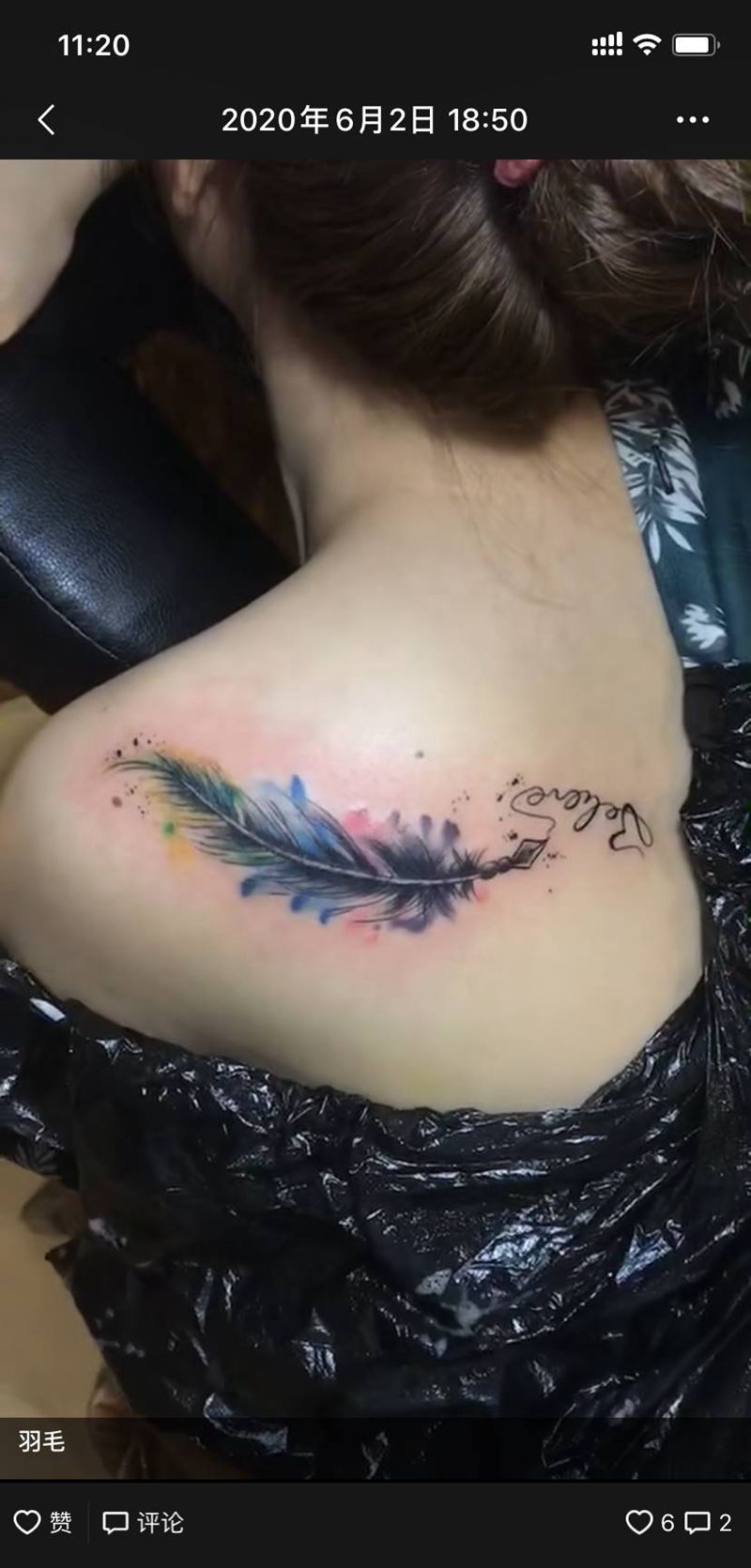 当前位置: 首页 >湖南省岳阳市纹身店-岳阳九纹龙刺青纹身图案>羽毛纹身图片_肩部水彩纹身图案