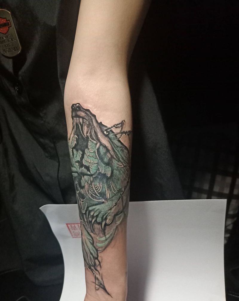 当前位置: 首页 >湖南省常德市纹身店-台湾刺青湖南店纹身图案>狼 遮盖纹身图片_手臂纹身图案