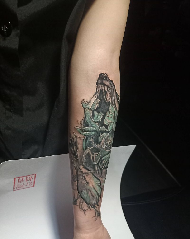 当前位置: 首页 >湖南省常德市纹身店-台湾刺青湖南店纹身图案>狼 遮盖纹身图片_手臂纹身图案