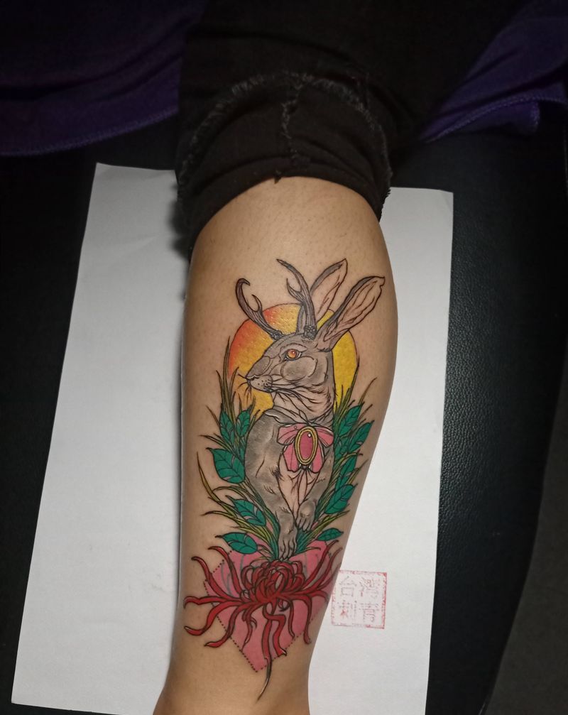 当前位置: 首页 >湖南省常德市纹身店-台湾刺青湖南店纹身图案>兔神 儿子属相 +彼岸花纹身图片_腿部纹身图案