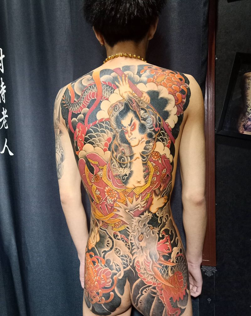 • T云龙九郎纹身图片_背部老传统云龙九郎纹身图案