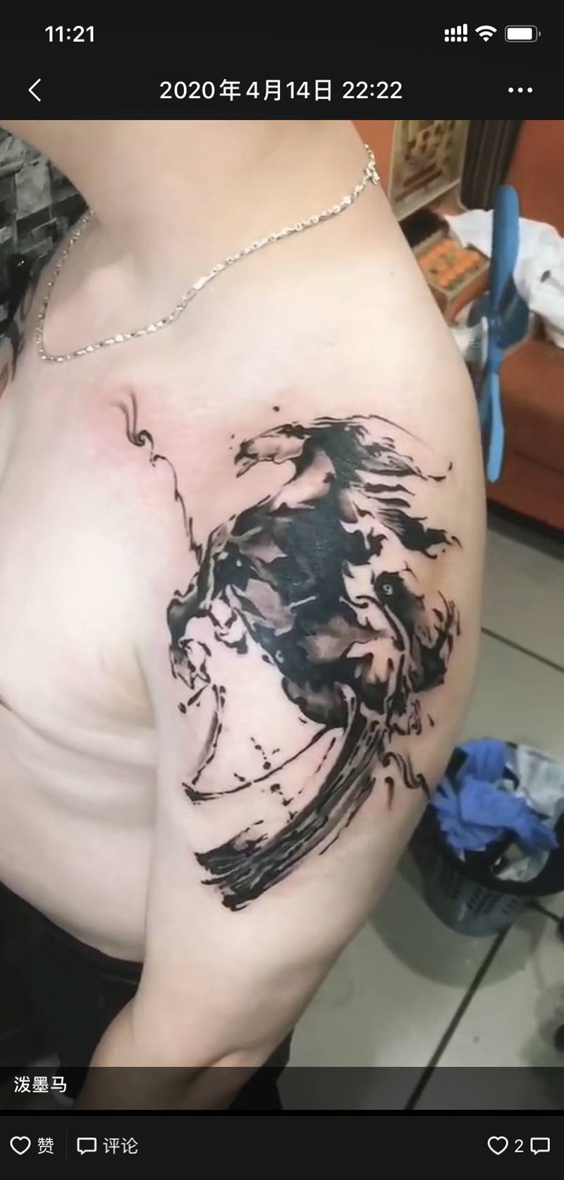 当前位置: 首页 >湖南省岳阳市纹身店-岳阳九纹龙刺青纹身图案>马纹身图片_手臂水墨纹身图案