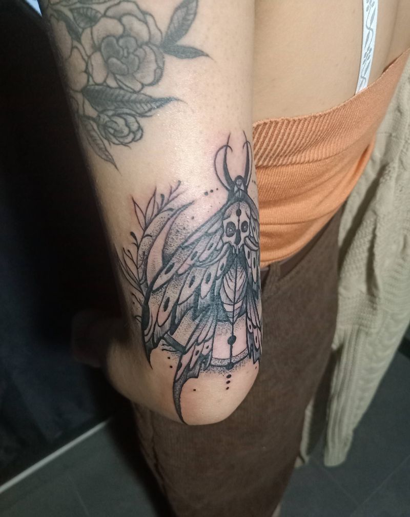 当前位置: 首页 >湖南省常德市纹身店-台湾刺青湖南店纹身图案>暗黑扑棱蛾子纹身图片_手臂纹身图案