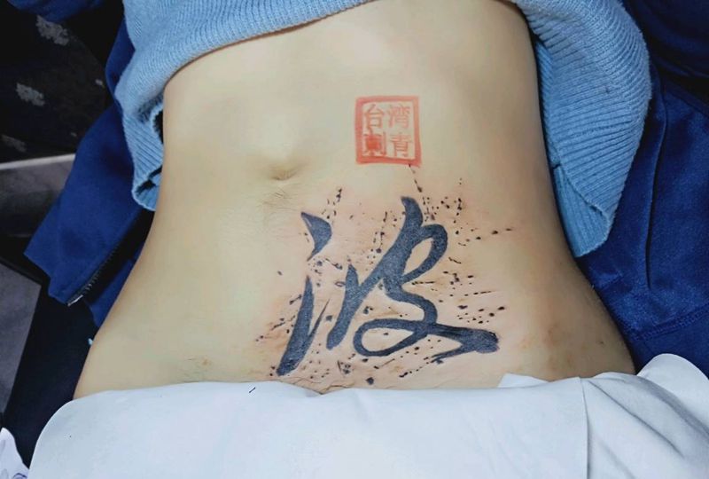 • T关于私处得爱!纹身图片_成品腹部清新字符图腾纹身图案