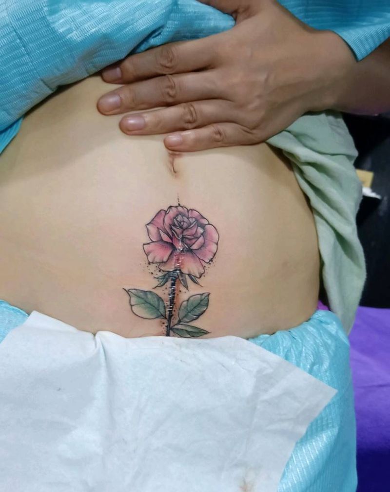 疤痕修饰 玫瑰纹身图片_腹部纹身图案